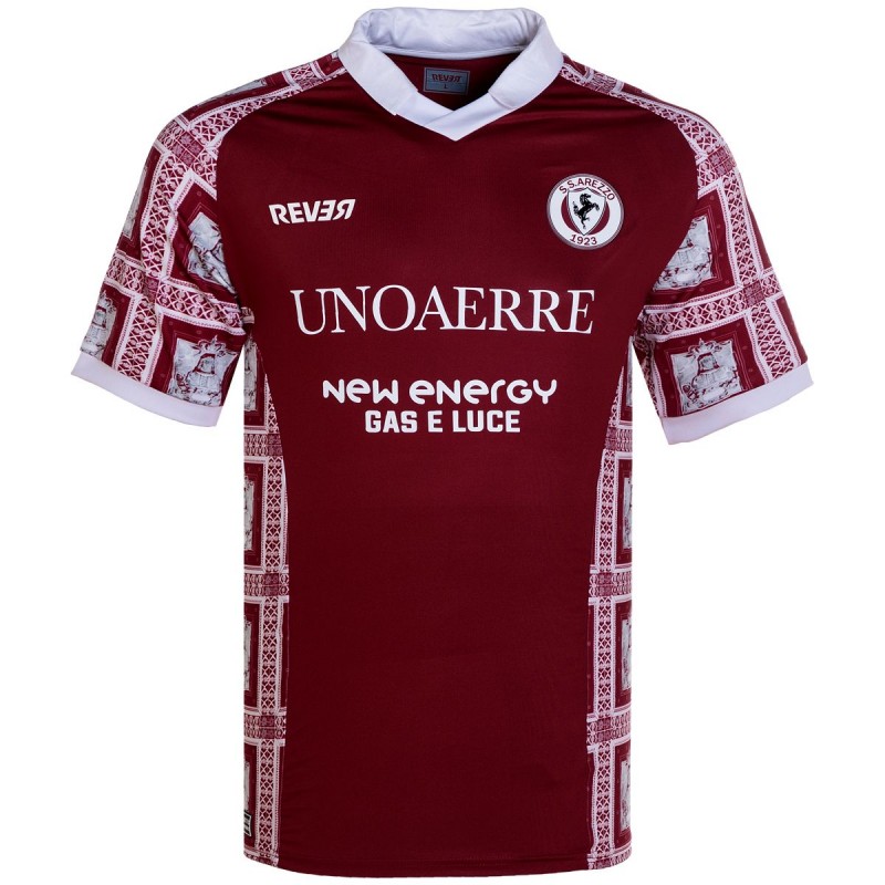 La maglia home dell'Arezzo 2024-25 rende omaggio alla Madonna del Conforto.