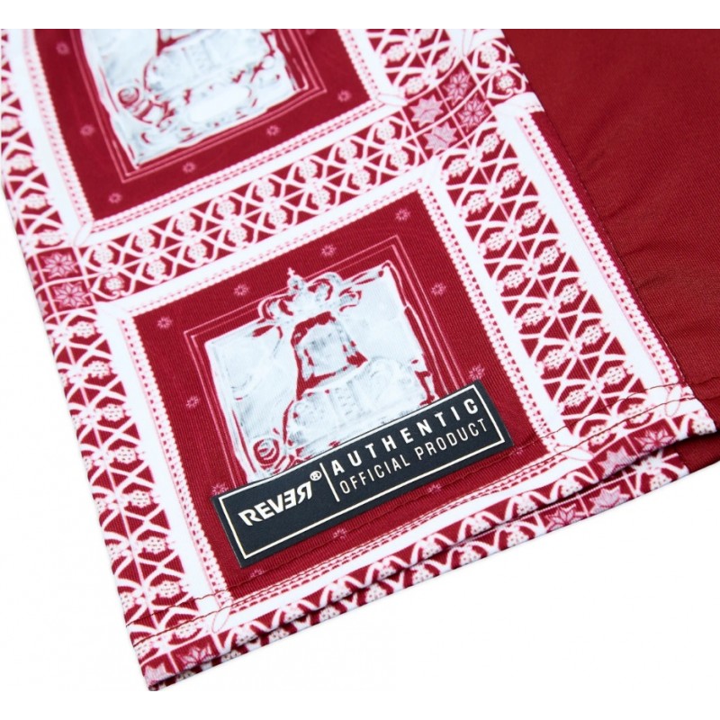 La colorazione bordeaux lascia il posto a un motivo ripetuto dell'immagine del santo patrono della città sulle maniche e sui pannelli laterali.